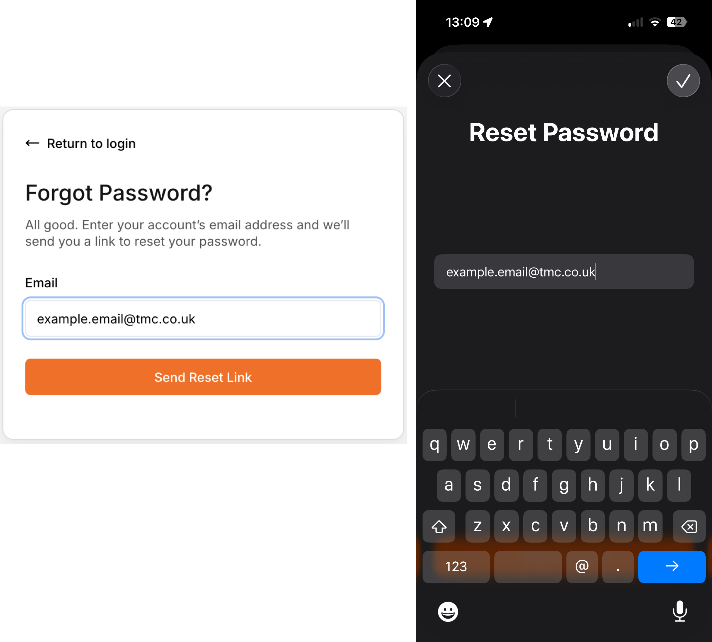 Enter the email address associated with your account, and hit 'Send Reset Link'